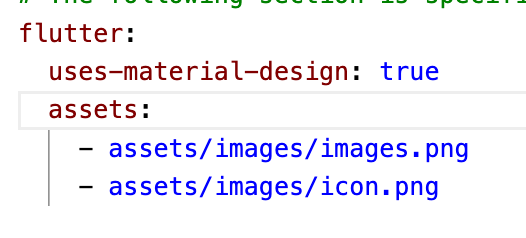 2. pubspe.yaml 파일에 이미지 경로 저장해주기